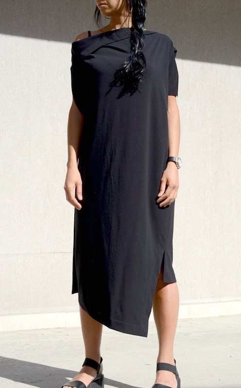 Asymmetrical Dress Short Sleeves Dress Black Short Dress Off Shoulder Dress Designer Dress High Fashion Style Sexy Dress Fall Dress Women Fall Dress Mid Knee Length Top Designer Top Formal Top Summer Top