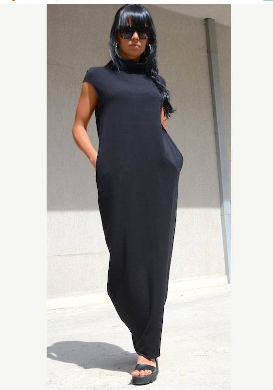 🌐🌐🌐 DHL EXPRESS SHIPPING 🌐🌐🌐Bodycon High Neck Black Dress, Pencil Floor Length Pocket Dress, Loose Fitting Evening Dress, Maxi Prom Gown, Comfortable Style Dress, Cozy