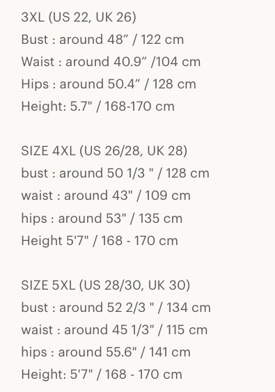 Please, see the Body measures in Policies, Additional Information