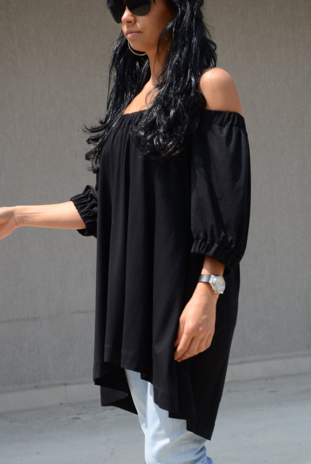 Sexy Tee Black Tee Off Shoulder Tee Raglan Sleeves Tee Festival Top Cute Top Summer Crop Top Extravagant Tee Everyday Tee Shirts Trendy Tee Shirts Mod Outfit Summer Outfit Crop Top