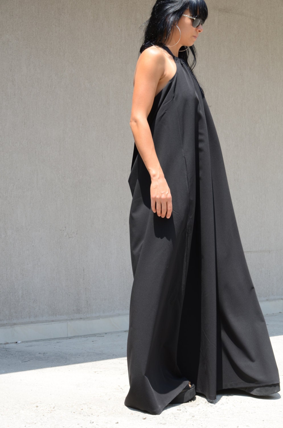 🌐🌐🌐 DHL EXPRESS SHIPPING 🌐🌐🌐Special Occasion Open Back Long Gown, Black Loose Floor Dress, Unique Bridesmaid Dress, Cocktail Loose Fitting Dress Photography Gown Dress