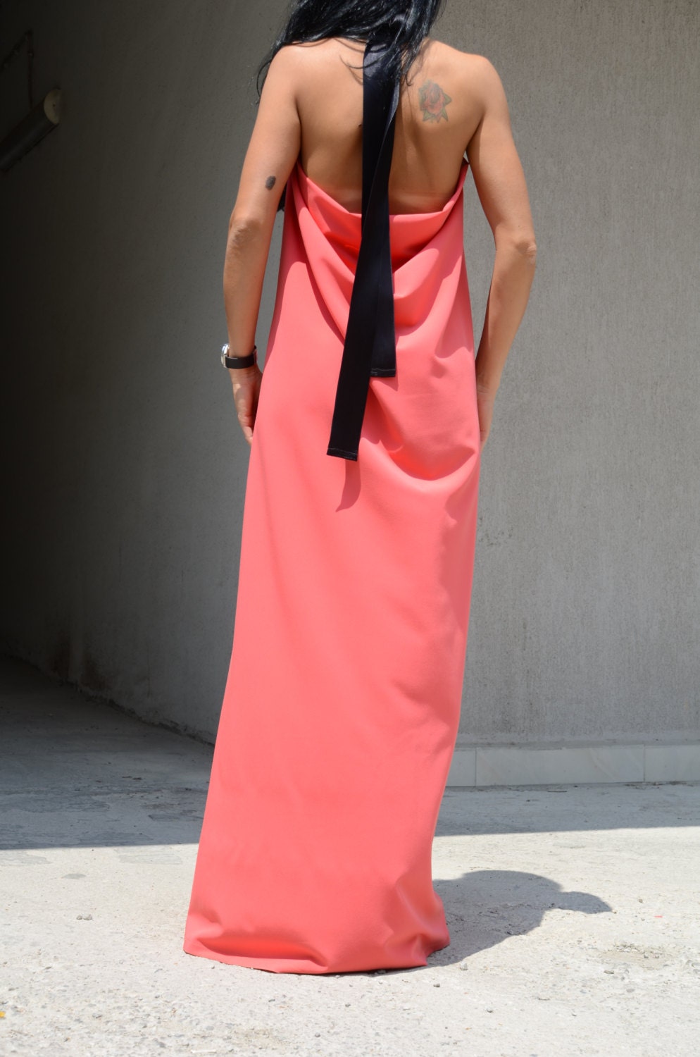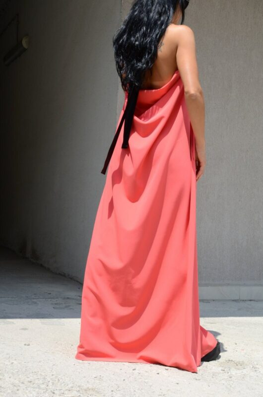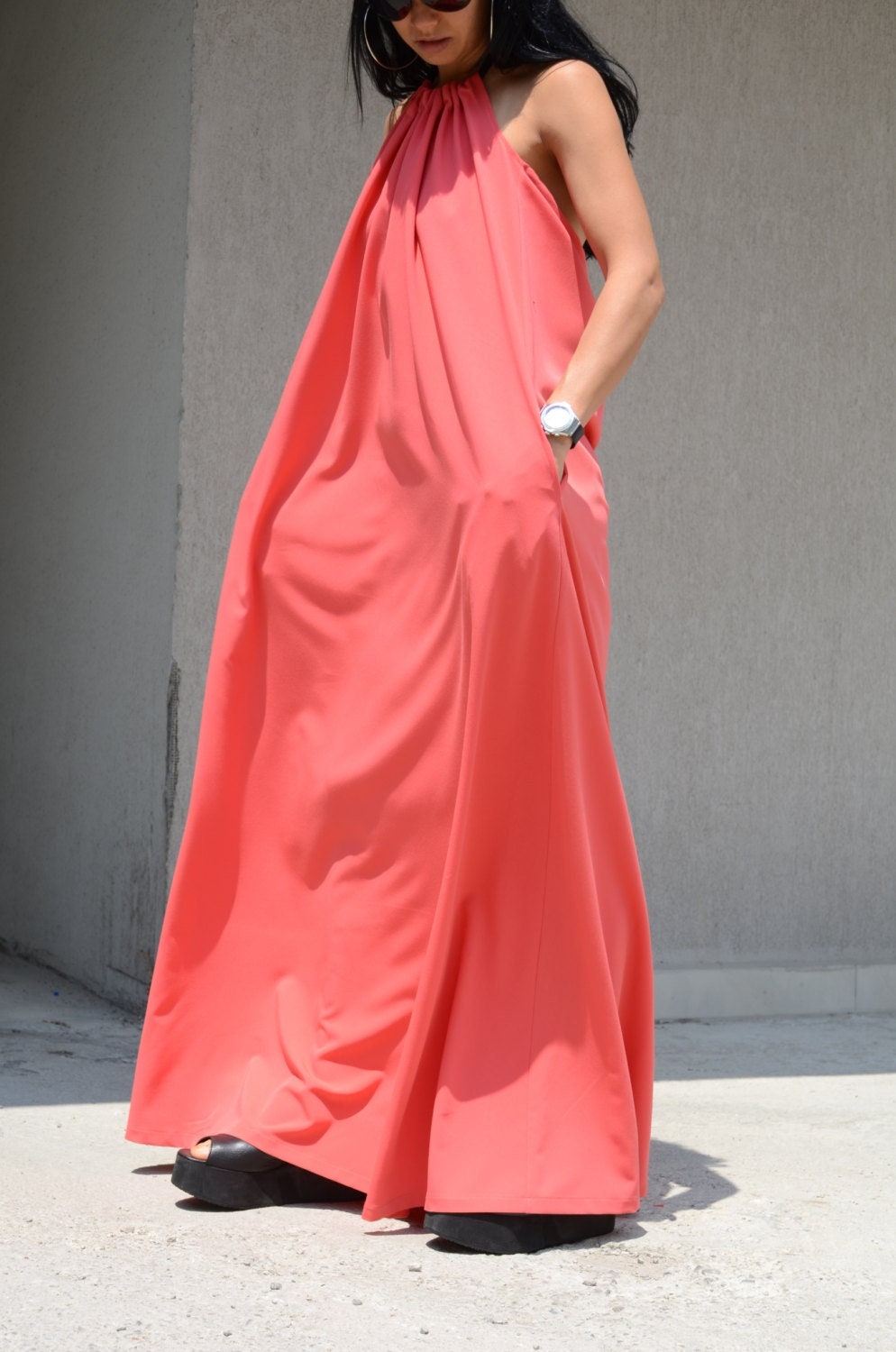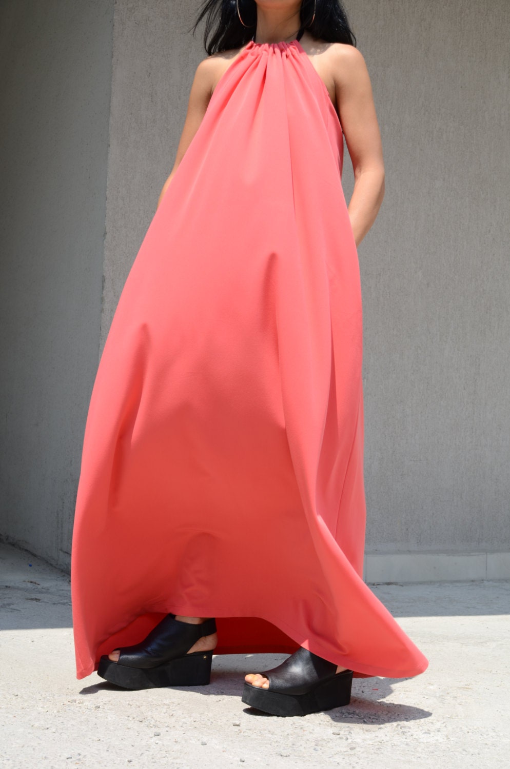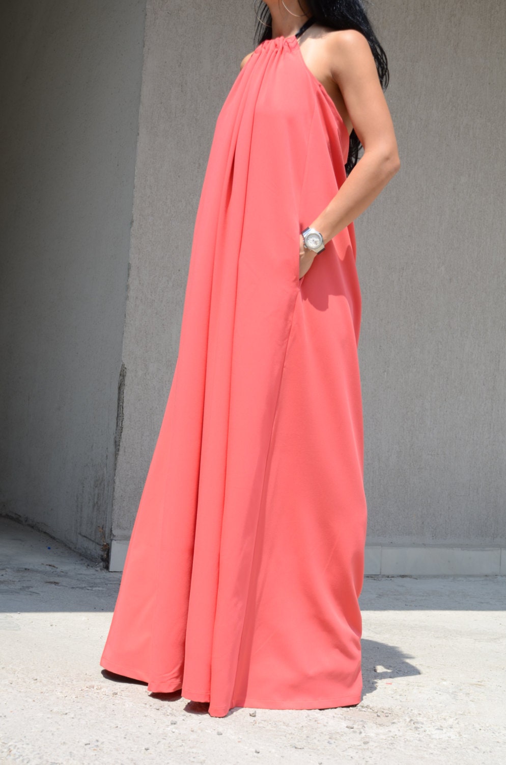 Bridesmaid Gown Comfortable Gown Coral Maxi Dress Long Gown Halter Gown Oversize Gown Romantic Gown Floor Gown Special Occasion Orange Gown Sexy Dress Evening Gown Formal Gown