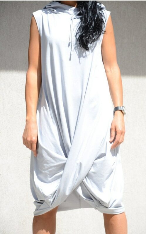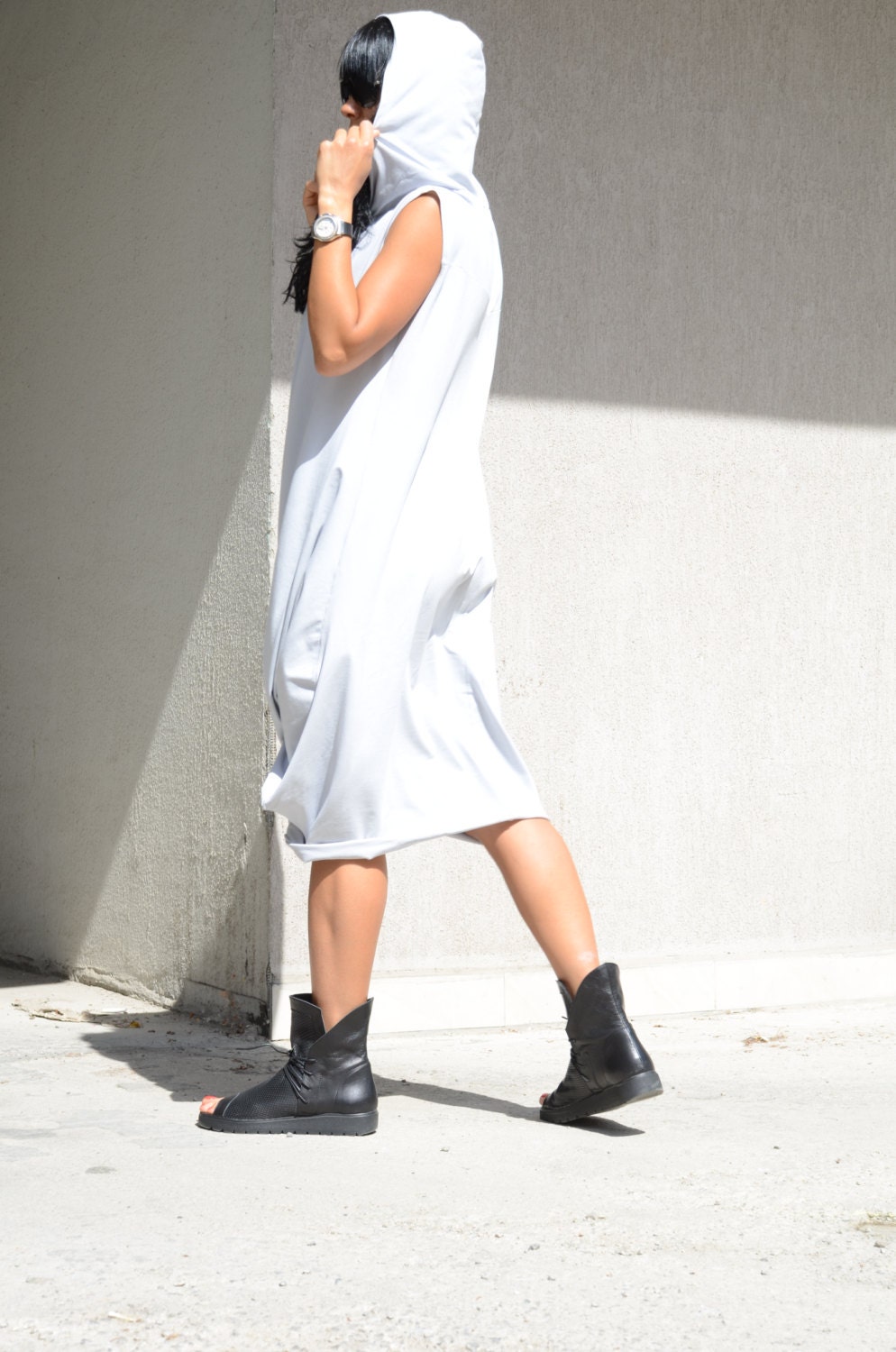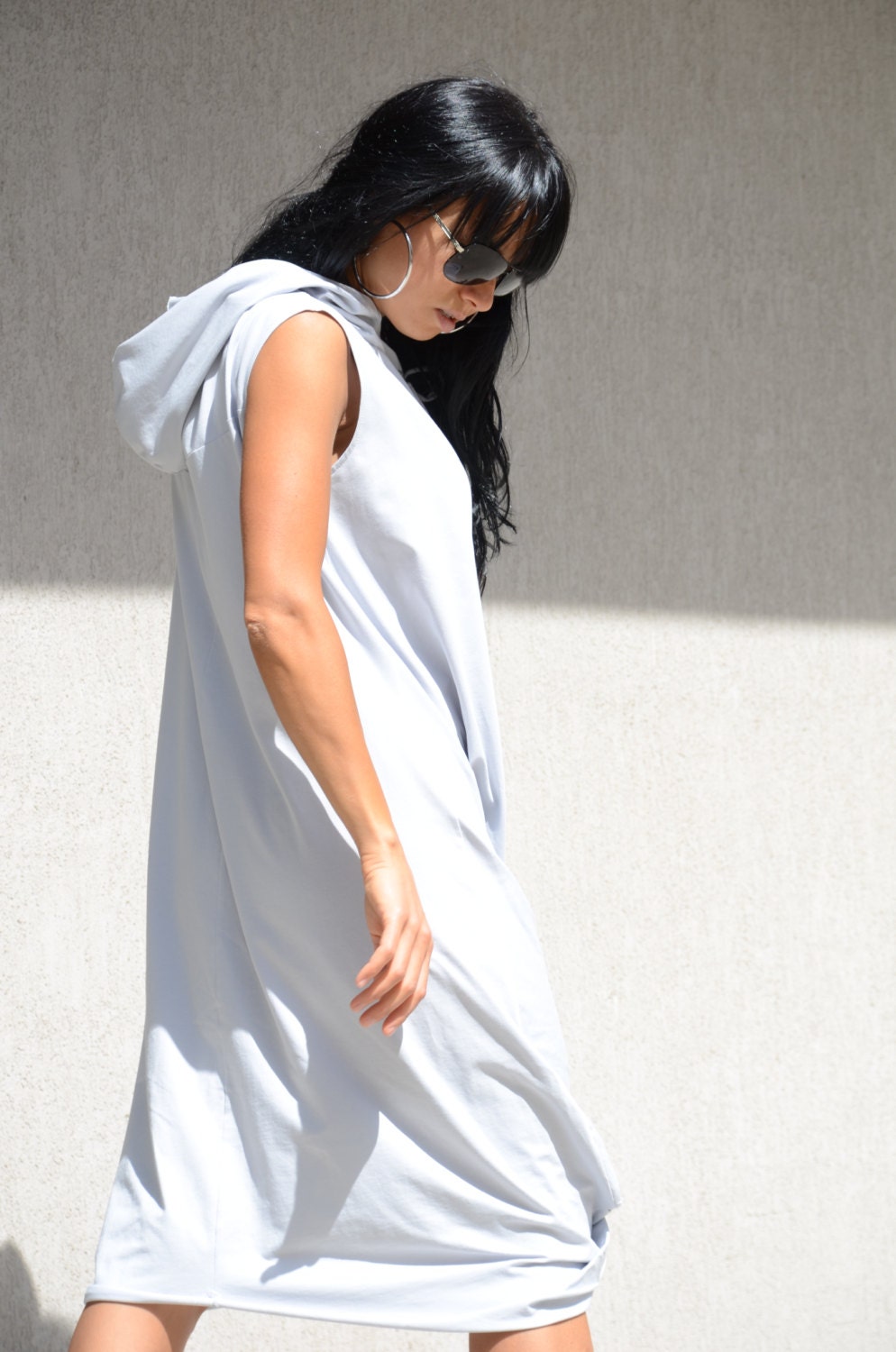 🌐🌐🌐 DHL EXPRESS SHIPPING 🌐🌐🌐Abaya Maxi Dress with Hoodie, Asymmetric Knee Length Oversize Tunic, Summer Grey Slouchy Top, Slouchy Clothing Baggy Clothing Urban Clothing