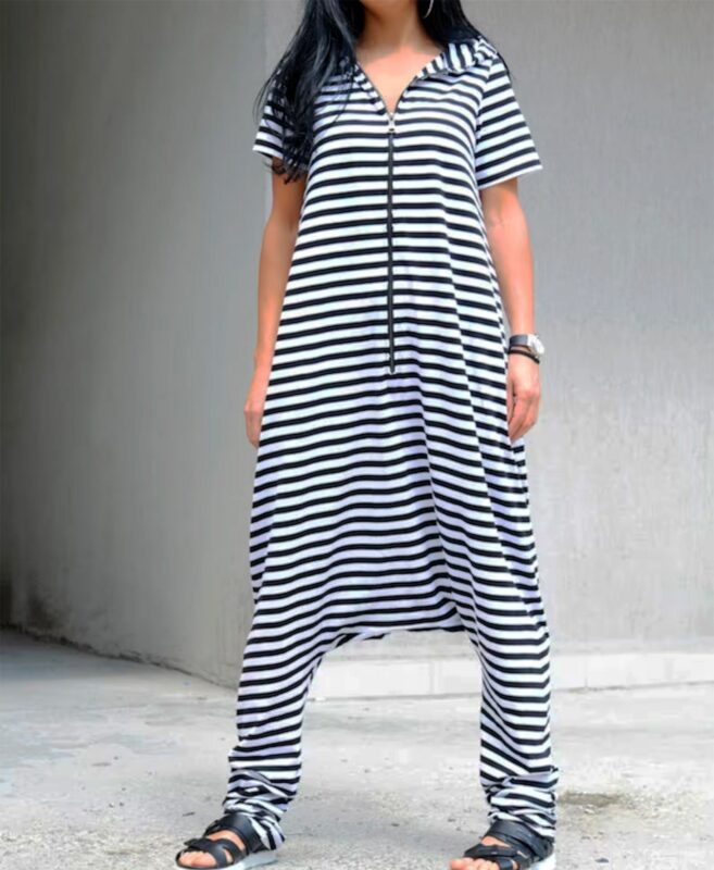 Zipped Romper Low Crotch Romper Summer Romper Maternity Romper Loose Jumpsuit Striped Jumpsuit Harem Jumpsuit Short Sleeves Onesie Comfortable Overall Maxi Overall Harem Overall Hooded Overall Comfy Overall